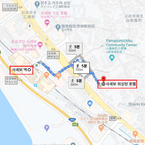 사세보 워싱턴 호텔은 사세보 역에서 도보 5분으로 이동 가능하여 관광에 편리한 위치에 있는 호텔이다. |