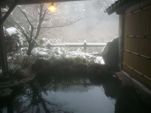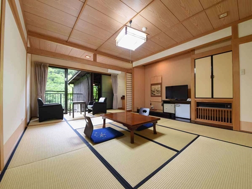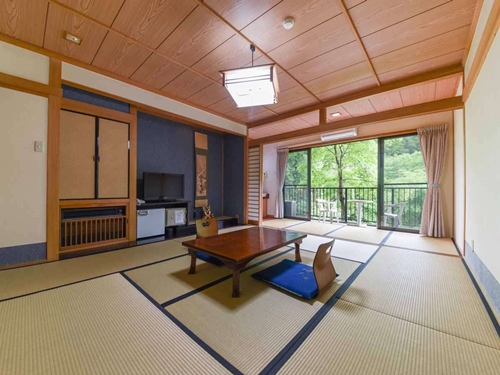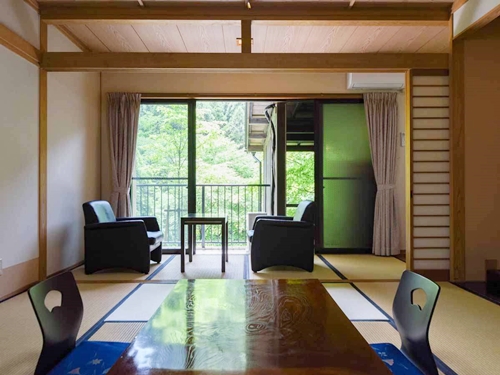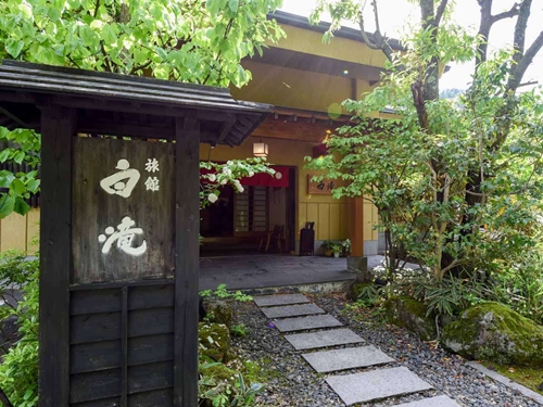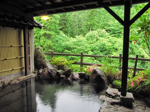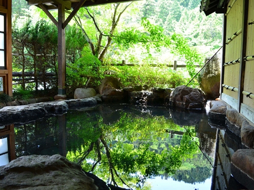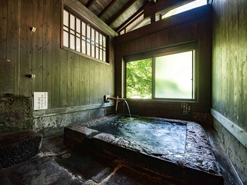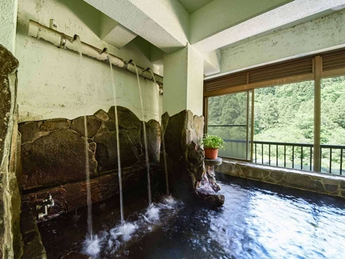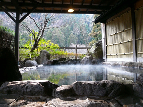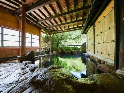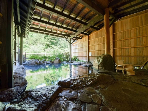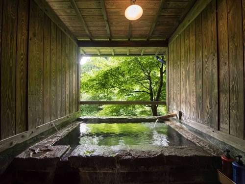 쿠주의 대자연에 둘러싸인 스지유 온천의 료칸 시라타키는 6개의 온천시설과 반노천온천포함 객실에서 언제든지 온천을 즐길 수 있다. |