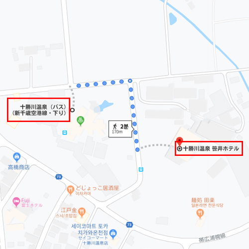 | - 자전거 대여 서비스 (4월~9월 유료 이용 가능) - 탁구 (유료) [교통편 안내] ※ JR오비히로역에서 토카치가와 온천 버스 정류장까지 셔틀 운행(숙박자 한정 무료 캠페인) - JR오비히로역→토카치가와 온천: 15:26▶15:55、16:51▶17:20、18:11▶18:40 - 토카치가와 온천→JR오비히로역 : 8:14▶8:44、9:54▶10:24、12:09▶12:39 |