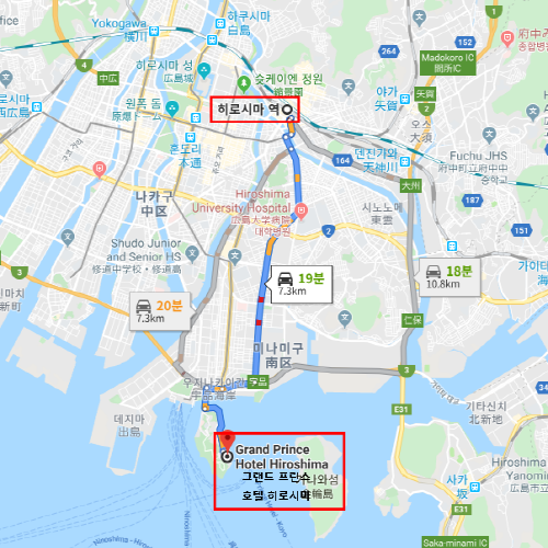 숙박지 주변히로시마역에서 차로 약 19분 소요 |