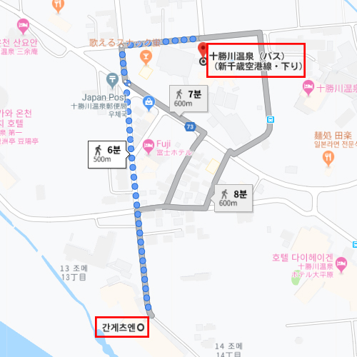 | - 에스테 (유료) [교통편 안내] ※ JR오비히로역에서 토카치가와 온천 버스 정류장까지 셔틀 운행(숙박자 한정 무료 캠페인) - JR오비히로역→토카치가와 온천: 15:26▶15:55、16:51▶17:20、18:11▶18:40 - 토카치가와 온천→JR오비히로역 : 8:14▶8:44、9:54▶10:24、12:09▶12:39 |