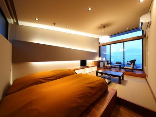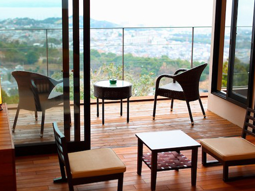 벳부 시내에서 조금 벗어난 한적한 고지대에 위치한 테라스 미도바루는 고급스러운 모던한 느낌의 온천 호텔로 1천평 부지에 단 14실만 있어 조용히 휴식하기에 매우 적합한 곳이다. 로비에는 높이 약 5미터의 통유리로 되어있어 벳부 시내의 전경과 일본식 정원을 즐길 수 있다. 모든 객실에 개인 테라스가 있어 밤에는 야경을, 아침에는 벳부만의 일출을 감상할 수 있고, 전 객실 금연이며(테라스 흡연가능) 객실 내에서 온천을 즐길 수 있도록 반 노천온천이 포함되어 있다. 석식은 여러 료칸에서 수행을 한 요리장의 고품격의 창작 가이세키로 맛뿐만 아니라 눈도 즐거운 코스 요리로 제공된다. 대욕장도 통유리로 시내 전망을 바라보며 온천을 즐길 수 있도록 설계되었으며, 온천의 수질은 유황천(황화 수소형)으로 만성 피부병, 당뇨병, 류머티즘 요통, 관절통 등에 효과가 있으며, 황화 수소형의 경우 고혈압, 동맥 경화 개선에도 큰 효과가 있다. |
