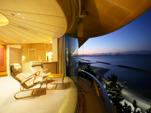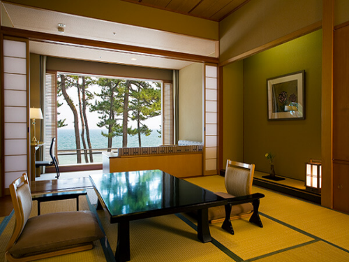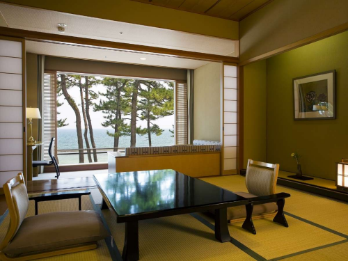 성과 같은 구조로 웅장함을 뽐내는 카이케온천을 대표하는 료칸으로 대부분의 룸이 오션뷰로 바다를 바라보며 풍경을 즐길 수 있다. 다다미 스타일의 기본룸을 포함, 양실, 노천탕이 포함된 객실등 고객의 니즈에 맞춘 다양한 룸타입을 보유하고 있다. 해산물과 소고기 재료 등을 이용한 다채로운 현지 식재료를 이용한 가이세키 메뉴는 시각과 미각을 동시에 만족시킨다. 질 좋은 자가 원천 기술을 보유한 호텔 내 온천시설은 많은 종류의 탕도 구비하고 있어 원하는 만큼 많이 이용 할 수 있다. 세심한 서비스로서 JR 요나고 역에서 송영서비스도 제공하고 있다. 공항 또는 시내와 많이 멀지 않아 온천욕을 즐기며 관광하기에도 편리한 료칸으로 추천할 수 있다. |