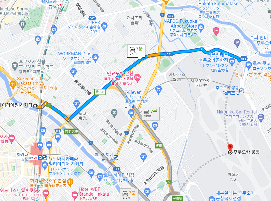 -하카타역에서 도보 10분 이내에 위치해 접근성이 용이한 비지니스 호텔이다. 하카타 시내 쪽 관광시 버스나 전철이동이 자유롭고, 주변에 상가나 상점이 많아 쇼핑에도 좋다. 관내 깔끔한 분위기의 양실 룸을 보유 하고 있으며, 비지니스나 관광 정보 검색에 편리한 와이파이 사용이 가능하다. 알찬 메뉴로 준비한 조식 뷔페는 든든한 하루의 시작을 도와준다. 번화가 숙박에 적당한 위치로 추천할 수 있다. |