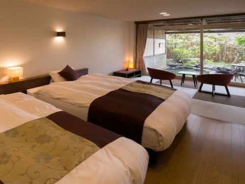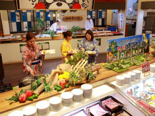 아소의 우치마키 온천에 위치한 유메오이소 료칸은 깔끔하게 준비된 시설을 자랑한다. 객실은 기본 화실부터 노천탕이 딸린 화양실까지 여러스타일로 준비 해 놓았으며, 대욕장 시설 뿐만 아니라 전세탕으로 이용할 수 있는 가족탕을 10개소나 준비해 놓아 언제든지 온천을 만끽 할 수 있다. 온천은 미인탕이라 불리우는 약알칼리성 샘질로 피로 회복과 통증 완화에 효능이 있다. 식사는 가이세키가 아닌 뷔페식으로 준비해 놓고 있는데 가이세키요리가 입맛에 안맞아 힘들거나 양이 적다고 느끼는 분들한테는 좋을수 있다. 아소산에서 키우는 소고기와 재철 식재료를 이용한 메뉴들을 엄선해 준비하였기 때문에 원하는 만큼 마음껏 즐길 수 있다. 조식 또한 뷔페식을 준비해 놓았기 때문에 정갈하고 깔끔한 일본식 정식 요리를 마음껏 맛 볼 수 있다. 관내에서 준비한 다양한 놀이 시설도 한번쯤 경험해 보며 즐거운 시간을 보낼 수 있다. 가족이나 부부, 커플 등의 그룹으로 오시기에 적당한 료칸으로 추천할 수 있다. |