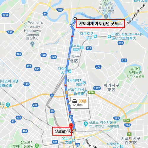 공항 기준신치토세 공항에서 차로 약 1시간 소요 |
