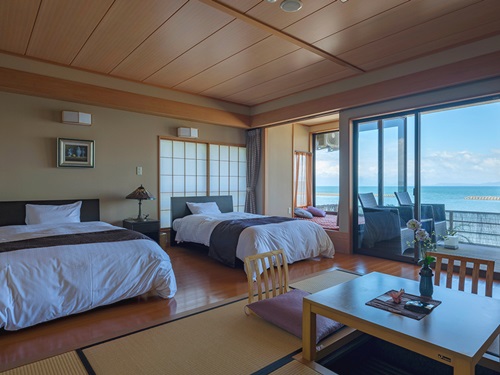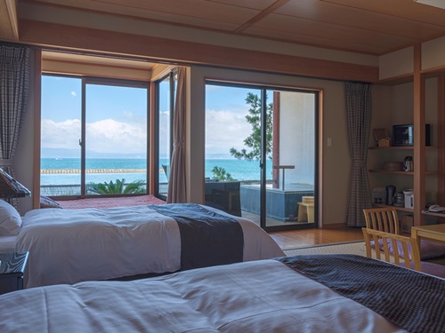 가고시마의 바다 긴코만에 면해 있어 온천 및 객실에서 드넓은 바다를 바라볼 수 있는 이브스키 긴쇼. 이브스키 명물 모래찜질 온천 바로 근처에 위치하고 있다. 객실은 일반객실과 노천온천 포함 객실이 있어 원하는 타입에 맞춰 이용이 가능하다. 노천온천포함 객실에서는 바다를 보면서 느긋하게 온천욕이 가능하다. 2층의 대욕장과 최상층에 천공의 노천온천에서는 계절과 시간에 따라 변화하는 바다의 풍경도 감상할 수 있다. 식사로는 가고시마의 다양한 농산물과 신선한 수산물로 만든 맛있는 향토요리를 제공하고 있다. 일상에서 벗어나 몸과 마음의 지친 피로를 풀러 가족, 연인, 친구와 함께 떠나보는 것은 어떨까. |