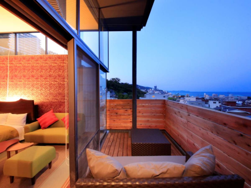 아타미 역에서 택시로 10분 정도 거리에 위치한 고급스러운 분위기의 료칸으로 일상에서 벗어난 색다른 시간을 즐기도록 정성의 서비스를 다하는 곳이다. 다양한 객실 사이즈와 종류를 준비하고 있으며, 온천으로 유명한 마을인 만큼 전망 좋은 바닷가의 풍경과 온천을 이용한 대욕장과 노천온천탕을 잘 구비하고 있다. 또한 현지의 풍부한 바다 식재료와 육지 식재료를 이용한 오감만족의 다양한 가이세키 코스 정찬 요리도 호평 받는 부분 중에 하나이다. 아타미 역에서 3회 한정으로 료칸에서 송영 차량을 운행하고 있으므로 미리 예약해 이용해 보는 것이 좋다. 각종 서비스와 편의시설 등으로도 부족함이 없으며, 무엇보다 온천욕과 함께 편안한 힐링의 시간을 즐기고자 하는 고객에게 추천할 수 있는 료칸이다. |