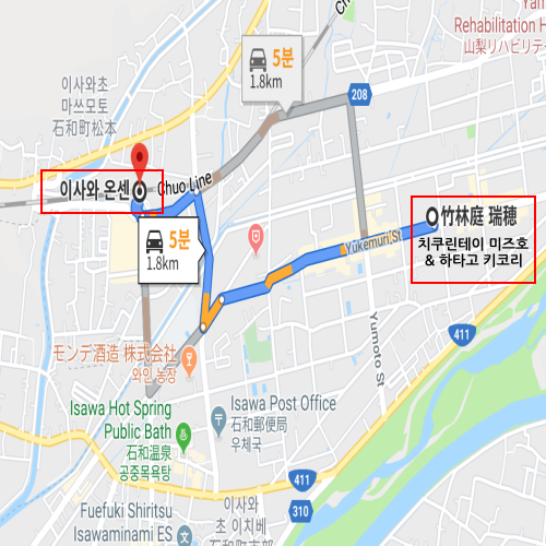 숙박지 주변이사와온센역에서 차로 약 5분 소요 |