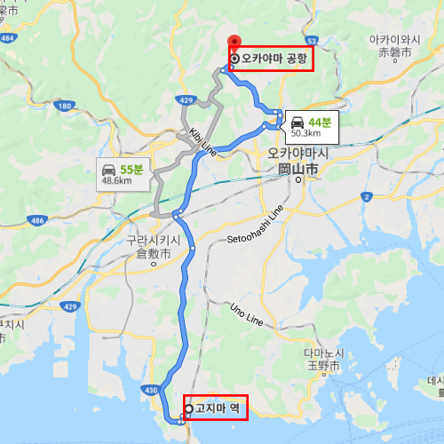 공항 기준오카야마 공항에서 차로 약 45분 소요 |