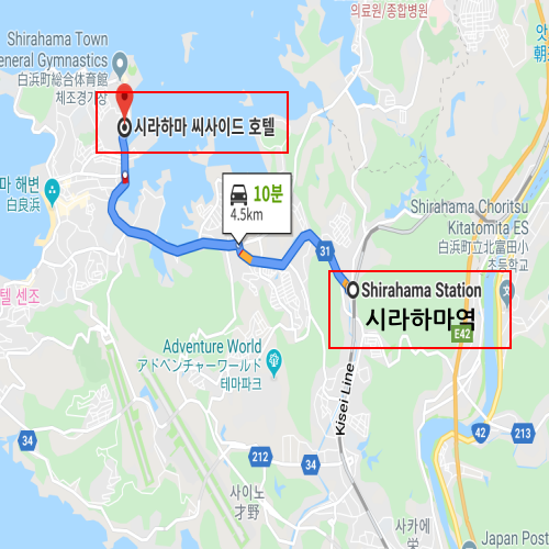 바다가 한눈에 바라보이는 탁트인 배경이 아름다운 씨사이드 호텔은 가족 단위의 휴가를 즐기기 위한 고객에게 많은 인기가 있다. 호텔 주변으로도 해수욕장 또는 체험 활동, 관광을 즐기기 위한 많은 관광지가 있기 때문에 숙박하면서 주변 관광을 둘러보는 즐거움도 있다. 다양한 고객층을 어우를 수 있는 객실 종류를 준비하고 있으며, 전 객실에서 바다가 보이는 오션뷰로 되어 있다. 식사는 현지 식재료로 신선하고 다양한 메뉴를 제공할 수 있는 뷔페식으로 제공하고 있다. 시라하마 역에서 택시로 15분정도 소요 되며, 오사카나 다른 지역 쪽에서 이동시에는 고속버스 이용이 편리하다. 버스 이용시 청류장에서 하차 후 호텔까지 도보로 이동이 가능하다. 여름 휴가를 즐기거나 관광을 즐기기 위한 고객에게 추천 할 수 있는 가족형 호텔이다. |