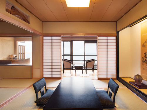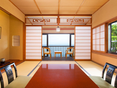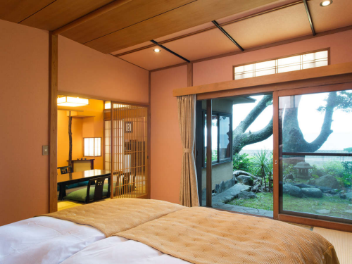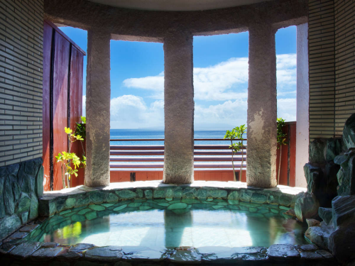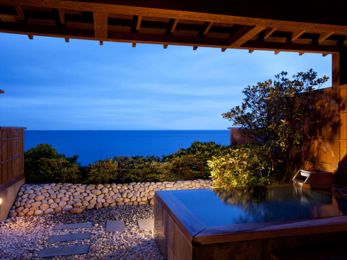 이즈 반도의 아름다운 바다를 바라보며 즐길 수 있는 전통 료칸이다. 각 객실은 여유있는 사이즈로 준비되어 커플, 부부 뿐만 아니라 가족 단위의 많은 인원이 이용하기에도 적절하다. 방류형 천연온천을 이용한 다양한 온천탕으로 알차게 온쳔욕을 이용할 수 있으며, 숙박객에게는 전세 노천 온천탕을 무료로 이용할 수 있도록 제공하고 있다. 이즈반도의 신선한 재철 식재료를 이용한 깔끔하고 정갈한 가이세키 요리는 많은 숙박객의 만족을 이끌어내고 있다. 또한 관내에 숙박이용에 편리하도록 다양한 오락시설들도 잘 준비해 놓은 편이다. 또한 숙박객들의 편리한 이동을 위해 이즈아타카와역에서 송영셔틀버스 차량을 운행하고 있어 교통부분에 대한 배려도 엿보인다. 아름다운 풍경을 바라보며 한가로운 휴가를 즐기고자 하는 고객에게 추천 할 수 있는 료칸이다. |