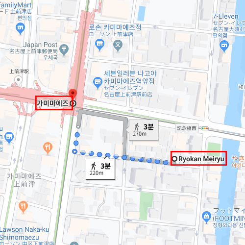 나고야 시내의 지하철 카미마에즈역에서 도보 3분 거리의 호조의 입지를 자랑하는 소박하고 작은 료칸으로서, 각 객실은 다다미 6조 사이즈의 객실을 22실 구비하고 있다. 전 객실은 욕실 또는 화장실이 공용 사용으로서 가족 단위나 친구 사이의 숙박객이 이용하기에 적당한 스타일이다. 냉장고, 냉난방 등을 갖추고 있으며, 욕실이 없는 대신, 남여 대욕탕을 24시간 운영하고 있어, 관광 또는 업무로 인해 쌓인 피로를 풀기 좋다. 시내에 위치하고 있기 때문에 별도로 온천수를 이용하지 않고 있다. 관광지로의 이동시, 교통의 입지가 좋은 편으로, 교통이 좋으면서, 소규모 료칸 숙박을 희망하는 고객에게 추천 할 수 있다. |