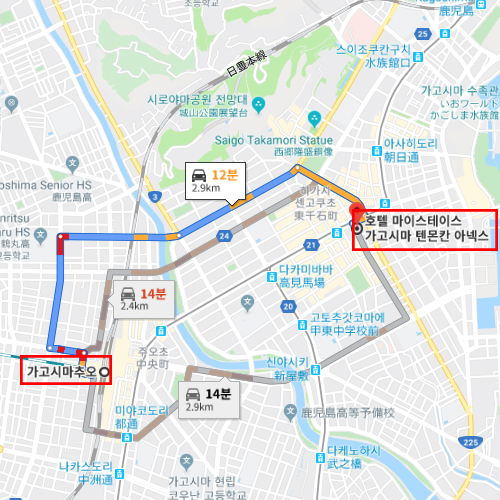 가고시마의 최대 번화가 텐몬칸 도오리에서 도보 2분 거리에 위치한 발군의 입지를 자랑하는 합리적인 가격대의 호텔로 모던한 스타일의 깔끔한 객실을 준비하고 있어 숙박객에게 인기가 있다. 다양한 종류로 다양한 숙박객이 머물기에 적당하며, 또한 호텔내에서 와이파이 시설이 완비되어, 관광지 검색 또는 업무상 컴퓨터 사용에 대해 편리하다. 공항에서도 리무진 버스 또는 가고시마 역까지 이동 후 호텔까지 도보 또는 노면전차 등으로 편리하게 이용할 수 있어, 가고시마를 저렴하게 숙박하며, 관광하고자 희망하는 고객에게 추천 할 수 있다. |