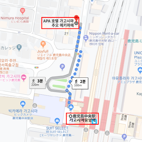 가고시마 중앙역 바로 앞에 위치한 아파 호텔 체인으로 모던하고 안정감 있는 스타일의 객실을 구비하고 있다. 편안함을 추구하고 있으며, 객실 외의 호텔 시설도 충실히 구비하고 있다. 가고시마의 식재료로 정성껏 준비한 다양한 뷔페식으로 조식을 제공하고 있어 바쁜 아침의 든든한 도움이 되고 있다. 또한 관내 인터넷 검색에 용이하도록 와이파이도 잘 설치 되어 있어 관광지 검색 등에 편리하다. 관광으로 이동이 잦은 관광객들이 편리하게 이동할수 있는 호텔로 추천 할 수 있겠다. |