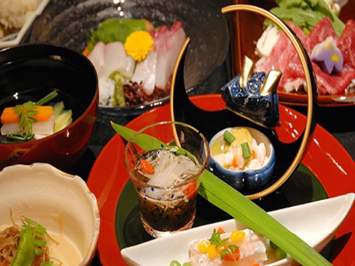 | 석식 | 있음 / 가이세키 정식 / 운영시간 18:00 ~ 19:30 / 특이사항 : 타케토리테이 객실 숙박자는 개인 전용 식사처에서 제공. |