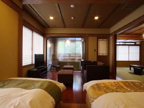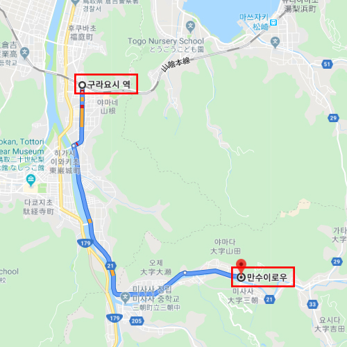 미사사 온천 마을에 위치한 만스이로 료칸은 료칸 내 화실, 화양실 및 노천탕 딸린 객실을 포함한 전 객실 44실의 호텔식 온천 료칸으로 미사사 온천 마을에 뛰어난 라듐 온천의 수질을 그대로 체험할 수 있는 료칸이다. 료칸에서 제공되는 온천수는 카케나가시(かけ流し, 방류식) 방식으로 최상의 온천 수질을 유지하고 있어 세계 굴지의 라듐 온천을 상질의 수질로 제공 받을 수 있다. 또한 만스이로 료칸은 바다에 인접해 있어 사계절 내내 싱싱한 해산물 요리를 제공하고 해산물 요리 이 외로도 미사사 지역의 풍부한 자연에서 얻을 수 있는 제철 식재료로 구성된 카이세키를 제공하고 있어 만스이로 료칸을 이용하는 고객들의 만족도를 높여주고 있다. |