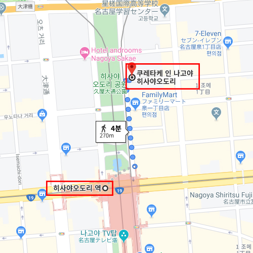 나고야 시영 지하철 히사야오도리역에서 도보 5분 이내에 위치한 접근성 좋은 시티 호텔이다. 각 객실은 업무상 출장 또는 가족 단위, 친구 그룹 등을 어우를 수 있는 다양한 객실 스타일을 구비하고 있다. 아침의 든든한 하루 시작을 돕는 나고야의 다양한 메뉴를 준비한 뷔페식도 호평이며, 하루 스케줄의 피로를 풀게 해 줄 대욕장 또한 인기가 있다. 또한 인터넷 사용, 검색에 용이하도록 객실 내 와이파이 시설도 완비되어 있어 편리하다. 편리한 교통 접근성과 합리적인 스타일의 시설 등을 희망하는 고객에게 추천할 수 있는 호텔이다. |