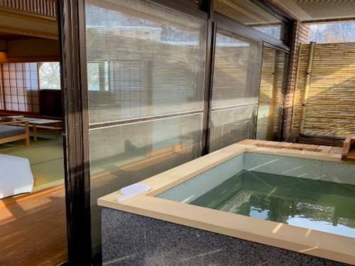 죠잔케이 온천마을에 위치한 고급스러운 분위기의 료칸으로 각 객실은 여유있는 넓이의 룸 사이즈를 이용하고 있으며, 전객실 금연룸으로 편안하게 숙박할 수 있도록 배려하고 있다. 온천탕이 포함된 객실도 있는데 24시간 언제든지 온천을 이용할 수 있는 부분이 장점이다. 식사는 북해도에서 생산되는 풍부한 식재료를 이용한 다양하고 아름다운 가이세키 정찬 요리를 선보이고 있어 숙박객들에게 많은 인기가 있다. 요리장의 장인 정신으로 탄생한 아름다운 요리를 맛보고 즐기고자 하는 고객에게 추천할 수 있는 료칸이다. 또한 삿포로 역에서 왕복으로 무료 송영버스를 운행하고 있어, 이동에도 세심한 배려로 편리함을 더했다. |