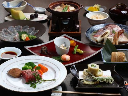 | 기타 | ※ 식사 플랜 또는 료칸 사정에 따라 식사메뉴와 장소는 예고없이 변경 될 수 있습니다. ※ 석식 식사는 시간 외에 제공이 안 될 수 있으므로 늦어도 오후 6시까지는 반드시 체크인을 부탁드립니다. ※ 못 드시는 음식이나 알레르기가 있는 식재료가 있으면 사전에 말씀 부탁드립니다. ※ 시설 확인 후 알레르기 대응이 가능한 경우 다른 재료로 대체해드립니다. ※ 식사처에 준비된 상품 외 따로 주류 등 이용 시 이용 불가 혹은 추가 요금이 발생할 수 있습니다. |