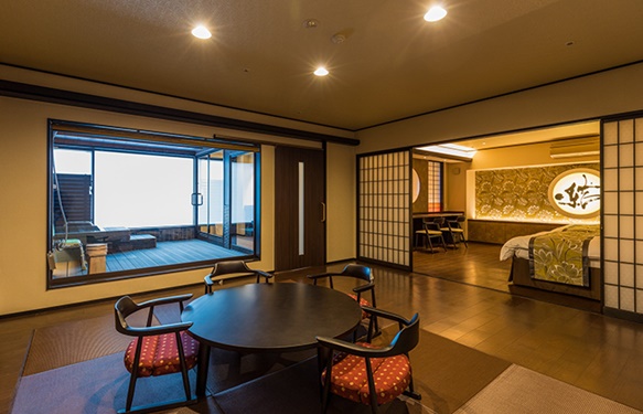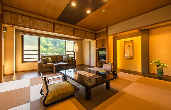 시즈오카 슈젠지온천의 유명 관광지인 대나무숲의 종착점에 위치한 마루큐료칸은 위치적으로 관광에 용이하며, 대나무숲 근처에 위치한 만큼 고즈넉한 자연을 느낄 수 있는 료칸이다. 료칸 내부는 전체적으로 전통적인 분위기와 자연과의 조화를 잊지 않으면서, 숙박객의 편안함을 위한 현대적인 서비스도 아낌없이 드러내고 있다. 시설 내 온천은 각기 다른 매력을 뽐내고 있으며, 대욕장의 노천온천의 경우 4월에 이용할 경우, 아름답게 핀 꽃들을 구경하며 온천을 즐길 수 있다. 다른 노천온천들 또한 하늘이 뻥 뚫려있어 날씨가 좋을 경우, 광활한 밤하늘을 바라보며 온천에 잠길 수 있는 매력이 있다. 지역의 식재료를 최대한 살린 음식과, 각기 다른 매력을 자랑하는 온천을 알차게 즐기기에 안성맞춤인 마루큐료칸은 각종 기념 여행뿐만 아니라 친구, 가족과의 여행에도 추천해드리고 있는 료칸이다. |
