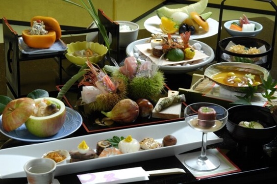 | 석식 | 있음 / 가이세키 정식 / 운영시간 18:00 ~ 18:40 / 특이사항 : ※ 화실 12조, 곁방포함객실은 2~3인 숙박 시 객실 내 식사 가능. |