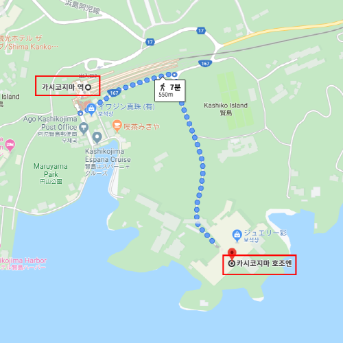 | 시설 주변 정보 | ★ 편의점 패밀리마트 (ファミリーマート 近鉄賢島駅改札外店) : 도보 약 7분 소요. - 영업시간 : 07:45~19:00 - 전화번호 : 0599-44-0840 |