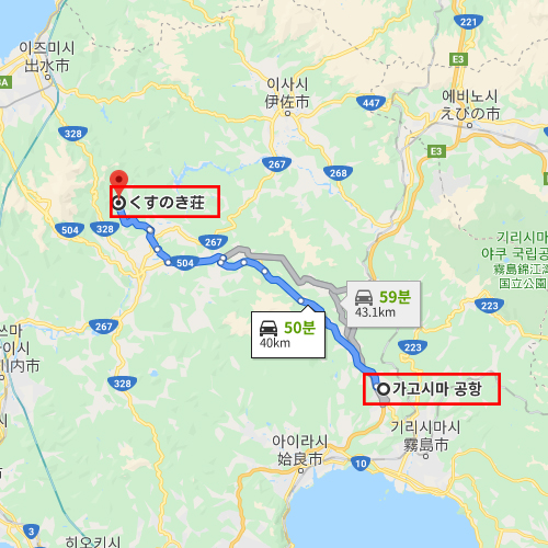 | [교통안내] - 가고시마 추오역에서 미야노조역 방향으로 하야시다 버스 탑승 후 종점 하차 (약 55분 소요) |