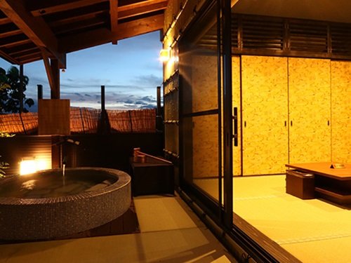 큐슈 구마모토의 야마가의 안방이라고 불리는 히라야마에 위치한 온천으로 사계절이 뚜렷한 언덕 위에 자리하고 있는 온천입니다. 전 객실 노천온천이 포함된 별채의 객실이며 객실 내의 소품이나 장식품에도 고급스러움이 묻어 있다. 매끈매끈한 온천을 즐길 수 있는 전용 노천온천은 누구에게도 방해받지 않고 즐거운 한때를 보낼 수 있다. 구마모토의 풍요로운 자연이 준 식자재를 최대한 살린 요리로 몸에는 물론 보기에도 좋은 요리를 선보이고 있다. 온천을 즐기면서 프라이빗하게 힐링하고 싶은 커플, 부부에게 추천하는 료칸이다. |