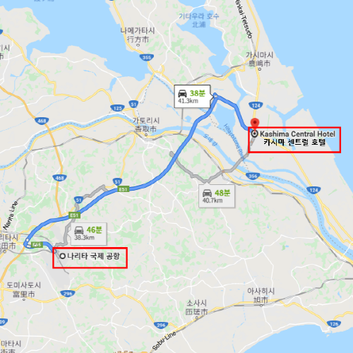 공항 기준나리타 공항에서 차로 약 38분 소요 |
