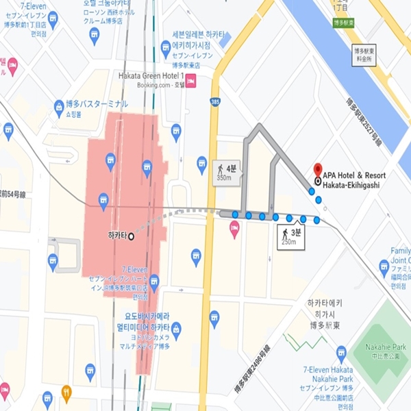 후쿠오카시 중심인 하카타역과 불과 도보 3분거리에 위치하고 있는, 아파호텔&리조트 하카타역히가시 호텔은, 좋은입지와 더블어 무료대욕장을 갖추고 있는 신도시형 호텔이다.프론트에는 자동체크인 기계가 설치되어 있어, 기다리지 않고 비접촉 체크인이 가능하며,아파호텔&리조트만의 익스프레스 체크아웃 포스트기가 있어, 룸카드 키를 투입만으로도 자동으로 체크아웃이 가능하다. |