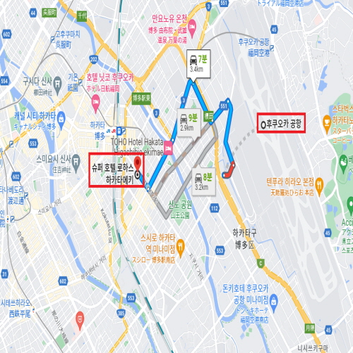 후쿠오카 공항에서 차로 약 7분! 하카타역에서도 도보로 이동 가능한 거리로 비즈니스는 물론 관광에도 매우 편리한 접근성을 가진 호텔이다. 미인 온천으로 알려진 하라즈루온천(原鶴温泉)에서 직송으로 용출해 온 천연온천도 마음껏 만끽할 수 있다. 호텔의 특색으로는 체크인시 프런트에서 이용 가능한 베개 코너가 마련되어 있어 더욱더 편안하게 휴식을 취할 수 있다. 또한 매일 아침 따끈따끈 갓 구운 빵과 뷔페 형식의 조식이 준비되어 있고, 웰컴바가 운영되고 있어 취향에 맞게 칵테일이나 소프트드링크, 커피 등을 즐길 수 있다. |