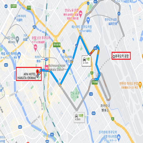 하카타역에서 도보로 6분, 후쿠오카 공항까지 차로 약 10분 거리에 위치한 관광이 편리한 호텔이다. 전실 와이파이 사용이 가능하며 안심하고 머물 수 있도록 정기적으로 소독을 실시하고 있다. 일본 영화, 서양 영화, 기타 화제의 VOD 시청이 무료로 가능하여 영화관 같은 느낌으로 편안하게 호텔에서 즐길 수 있다. 또한 30가지 이상의 맛있는 조식 뷔페가 마련되어 있어 여행하며 머물기 좋은 호텔이다. |