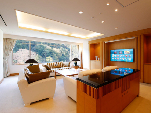 | -룸서비스, 크리닝 서비스, 연회장, 회의실, 다도실 -로비라운지, 스파에스테관, 일식 레스토랑, 토산품점, 리플레시 사롱, 바라운지, 가라오케 라운지, 면요리 레스토랑, 뷔페 레스토랑 [클릭] 아리마온천 관광협회 한국어 공식사이트 |