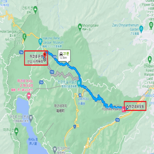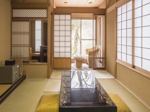 하코네 온센 산소 나카무라는 도시의 떠들썩함을 잊을 수 있는 자연 속에 위치한 15개의 객실을 갖춘 온천 료칸이다. 하얗고 향기가 강하며, 만병통치약으로 호평받고 있는 유황온천은 료칸의 매력이다. 경관을 중시하여 경사면을 활용해서 만든 숙소로서 객실마다 멋진 전망을 즐길 수 있다. 또한 제철 신선한 재료로 만든 요리를 맛보며 가족 또는 연인과 조용히 느긋하게 쉬어가기 좋은 료칸이다. |