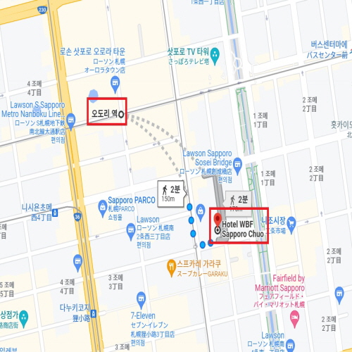 오도리 역(大通駅)에서 도보로 약 2분 거리에 위치하여 비즈니스는 물론 근처 유명 관광지들도 도보로 이동이 가능하다. 높은 천장과 개방적인 객실이 특징이며 최대 6명까지 숙박이 가능한 객실도 있다. 또한 전실 금연 객실로 가습공기청정기도 완비되어 있어 더욱 쾌적하게 머물 수 있다. 그 밖에도 니조 시장(二条市場)에서 신선한 해산물을 맛보거나 편안하게 방에서 식사할 수 있는 2가지 플랜으로 이용이 가능한 조식 서비스와 라운지에는 맥주, 와인, 위스키 등이 마련되어 있어 편리함을 두루 갖춘 호텔이다. |