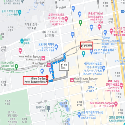 JR 삿포로역 서쪽 개찰구(JR 札幌駅西改札)에서 도보권 5분 내로 이동할 수 있으며 관광과 레저 활동의 거점으로 편리한 입지의 호텔이다. 나무의 따스함과 밝고 개방적인 분위기의 레스토랑에서는 눈앞에서 구워내는 크레페와 홋카이도의 신선한 채소, 고기, 생선을 사용한 뷔페 스타일의 아침 식사를 맛볼 수 있다. 또한 투숙객 전용 라운지와 여행의 피로를 풀 수 있는 대욕장, 코인세탁실 등이 마련되어 있어 더욱 편리하게 이용하며 머물 수 있다. |