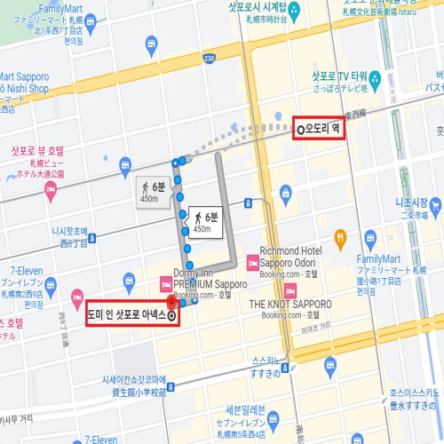 타누키코지상점가(狸小路商店街) 근처에 위치한 도미 인 삿포로 아넥스 호텔은 비즈니스와 관광의 거점으로 최적의 입지이다. 남녀별 대욕장과 사우나가 완비되어 있으며 「면역력 UP!」 콘셉트의 아침식사로는 갓 만든 오믈렛과 튀김, 그 밖에 연어, 가리비 등 좋아하는 해산물을 마음껏 담아 맛볼 수 있다. 또한 매일 밤 9시 30분 이후부터는 담백한 국물의 쇼유 라면도 제공하고 있다. |