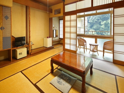 3층의 목조 건물로 지어진 츠에타테 온천마을에서도 손꼽히는 전통 료칸 중 하나이다. 조금 더 편하게 휴식을 취할 수 있도록 합리적인 요금으로 제공하고 있다. 피부 보습은 물론 좋은 수질의 온천도 늦은 밤까지 느긋하게 이용할 수 있다. 또한 옛 복고풍 분위기의 식당에서는 균형 잡힌 조식과 객실 내에서 편하게 맛볼 수 있는 도시락 스타일의 석식도 제공하고 있다. |