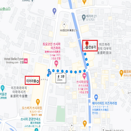 료칸 반쇼카쿠(万松閣)는 이즈하라항에서 도보로 약 10분, 티아라 몰에서는 도보로 약 3분 거리로 대마도의 중심부에 위치하여 주위의 다양한 편의 시설과 관광지 등의 접근성이 좋은 료칸이다. 또한 예약한 분에 한해서 이즈하라항까지 송영도 가능하여 더욱 편리하게 이용할 수 있다. 또한 두 가지 타입의 객실과 건강하고 균형 잡힌 아침 식사도 준비되어 있어 편안하게 쉬며 관광을 즐기기 좋다. |