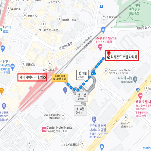 리치몬드 호텔 나리타는 케이세이나리타 역(京成成田駅)에서 도보로 5분 이내로 이동이 가능하며 하루 5편 호텔에서 공항까지 무료 셔틀버스도 운행하고 있어 교통의 접근성과 편리함을 갖춘 호텔이다. 총 205개의 객실과 9가지의 타입으로 가족 또는 친구들과 함께 여러 명이 머물기에도 좋다. 또한 일식, 양식의 다양한 메뉴를 갖춘 맛있는 아침식사와 파스타, 리조또, 카레라이스 등의 스페셜 런치 메뉴는 물론 분위기 좋은 저녁 식사도 즐길 수 있다. 그 밖에 코인세탁실, 룸서비스 등 여행과 출장 시 편리하고 편안하게 이용하기 좋은 호텔이다. |
