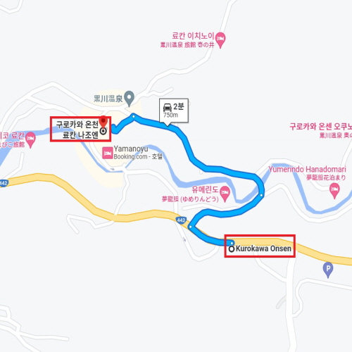 구마모토 공항에서 차로 약 1시간 15분 거리에 위치하였으며 쿠로카와온센 버스 정류장(黒川温泉バス停)에서 송영도 가능하여 편하게 이동할 수 있다. 2019년 새롭게 바뀐 료칸 난조엔은 총 12개의 객실 중 노천탕이 마련된 객실도 있어 가족, 연인과 자연 풍경을 바라보며 천천히 온천을 즐길 수 있다. 또한 탁구장과 족욕탕 등 여행의 피로를 풀며 제철 식재료를 듬뿍 사용하여 정성껏 만든 요리도 맛볼 수 있다. |