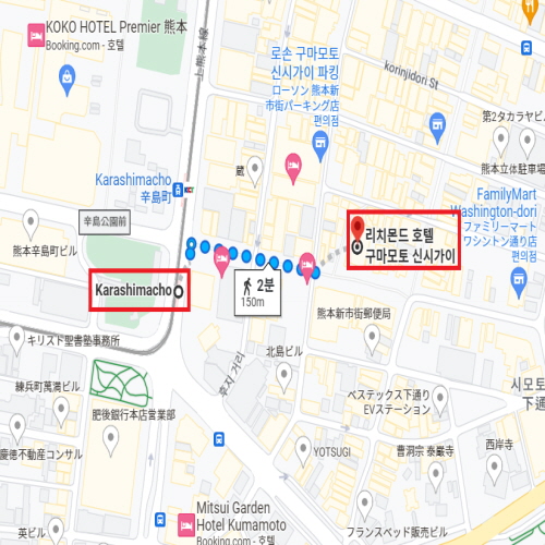 구마모토시 중심부에 위치한 리치몬드 호텔은 후쿠오카 공항에서 차로 약 1시간 21분, 구마모토 역에서는 차로 약 5분 거리에 위치한 교통의 접근성이 좋은 호텔이다. 총 158개의 객실은 6가지 타입으로 용도에 맞게 선택할 수 있다. 또한 이른 아침부터 이용 가능한 아침식사와 어린이용 메뉴도 준비되어 있어 자녀를 동반한 고객들도 편리하게 이용할 수 있다. 그 밖에도 구마모토 성, 사쿠라노바바 조사이엔(桜の馬場 城彩苑), 츠류야 백화점 등 도보권 내로 이동이 가능하여 관광 및 쇼핑을 즐기기에 최적의 위치의 호텔이다. |