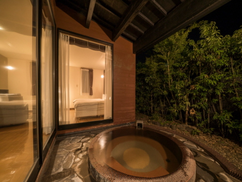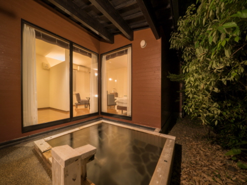 전 객실 별채 타입으로 구성된 료칸 유젠은 총 8개의 객실 모두 노천온천이 가능하여 프라이빗 한 공간에서 여유롭게 휴식을 취할 수 있다. 객실당 1인 또는 2인 숙박이 가능하여 친구 또는 연인과 조용히 이용하기에 좋으며 성인 2명이 들어가기에 넉넉한 욕조와 카케나가시 형식의 온천수는 알칼리성 단순 온천으로 신경통, 요통, 피로회복 등에 효능이 있다. 또한 프런트 옆에 위치한 식사처에는 테이블마다 칸막이가 되어 있어 개인실 느낌으로 조용한 식사를 즐길 수 있고 우에키 역(植木駅)에서 송영도 가능하여(사전 예약제) 편리하게 이동할 수 있다. |