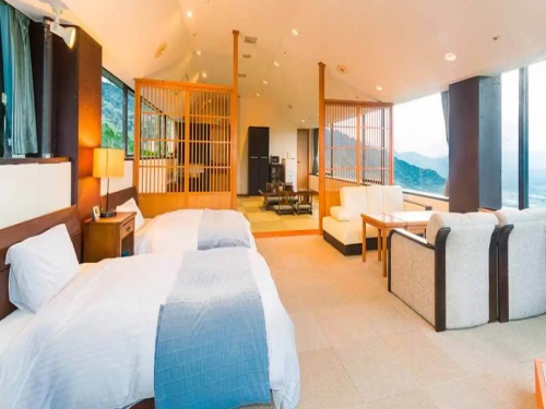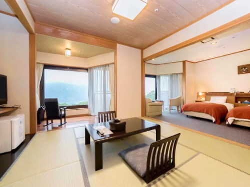 후쿠오카 공항에서 차로 약 2시간 50분, 구마모토 역에서는 차로 약 1시간 14분 거리에 위치하였으며 JA쿠기노큐유죠요코(JA久木野給油所横) 버스정류장에서 송영도 가능하여 편하게 이동할 수 있다. 총 68개의 객실은 양실, 화실, 화양실 객실과 테라스를 갖춘 8개 동의 별채로 되어있으며 단독 별채의 테라스에서는 바비큐도 즐길 수 있다. 또한 아소고가쿠(阿蘇五岳)의 절경을 바라보며 신경통, 근육통, 피로회복 등에 좋은 노천온천과 그 밖에도 요가, 그라운드골프, 토끼 랜드 등 자녀를 동반한 가족은 물론 다양한 시설을 이용하며 쉬어가기 좋은 호텔이다. |