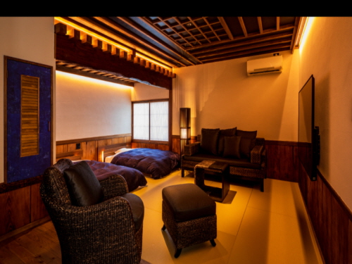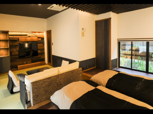 후쿠오카 공항에서 차로 약 2시간 33분, 아소역에서 차로 약 12분 거리에 위치하였으며 총 7개의 객실이 마련된 여유로운 분위기의 료칸이다. 카케나가시 방식으로 실내 온천의 욕조는 2층으로 나누어져 있어 위쪽이 아래쪽의 온도보다 더 뜨겁다. 또한 5종류의 전세탕은 가족 또는 연인과 원하는 시간에 충분히 이용 가능하며 엄선한 식재료로 정성껏 만든 요리도 개인실 식사처에서 조용히 즐길 수 있다. |