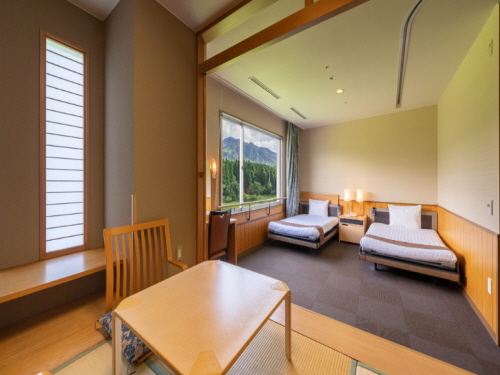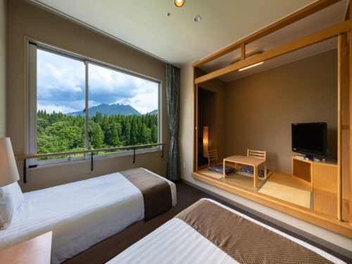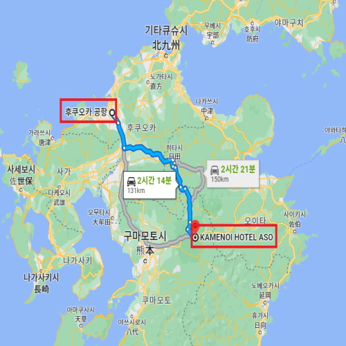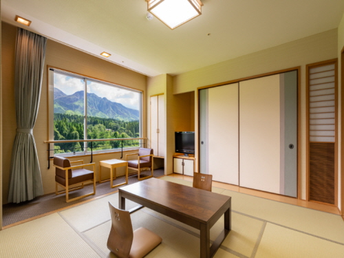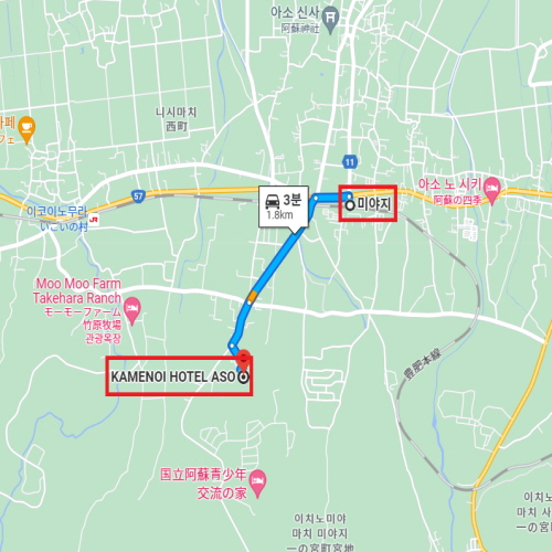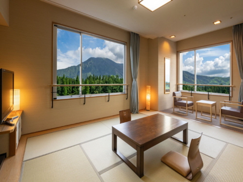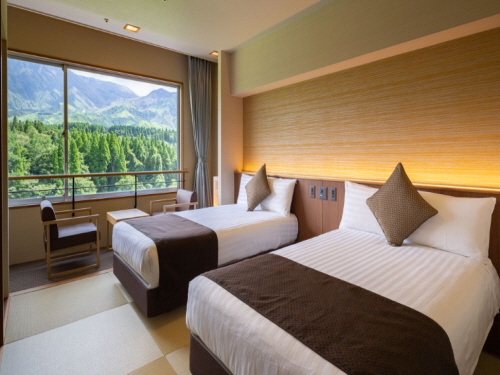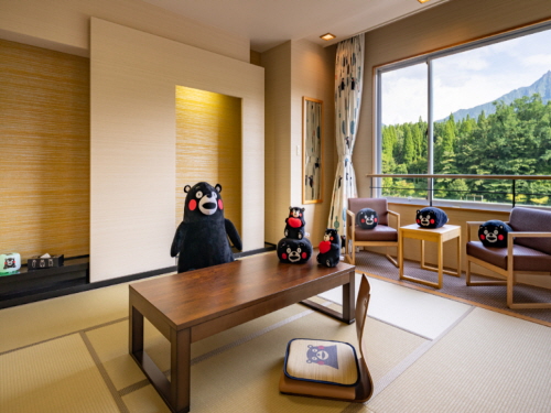 아소 카메노이 호텔은 후쿠오카 공항에서 차로 약 2시간 14분 거리에 위치해있으며 미야지역(宮地駅)에서 송영도 가능하여 편하게 이동할 수 있다. 차분하고 멋스러운 분위기의 총 66개의 객실은 아소고가쿠(阿蘇五岳)가 한 눈에 들어오는 웅장한 절경을 자랑한다. 또한 쿠마몬 인형과 슬리퍼, 머그컵 등 곳곳에 쿠마몬이 장식되어 있는 특별실도 마련되어 있다. 그 밖에도 이른 아침부터 늦은 밤까지 이용 가능한 대욕장과 노천온천이 완비되어 있으며 파크골프, 테니스 코트, 코인세탁실 등의 다양한 편의시설이 갖춰져 있어 가족 단위나 장기 숙박에도 편하게 머물기 좋은 호텔이다. |