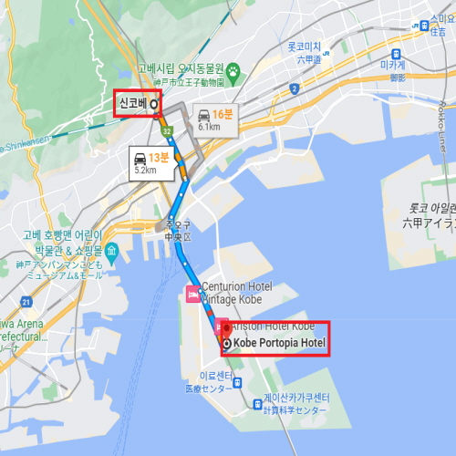 간사이 공항에서 차로 약 1시간 10분 거리에 위치하였으며 산노미야역(三ノ宮駅)과 신코베역(新神戸駅)에서 호텔 간 무료 셔틀버스로 편리하게 이동할 수 있다. 총 746개의 객실은 화실, 스위트룸, 아이를 동반한 가족이 안심하고 보낼 수 있는 타입의 객실 등 취향에 맞게 선택이 가능하다. 또한 고베 제일의 규모를 자랑하는 호텔인 만큼 연회장, 사우나, 피트니스 짐, 실내 온수 수영장 등의 다양한 편의시설이 갖춰져 있으며 옥상 테라스에서는 높이 110m에서 펼쳐지는 경치와 멋진 야경을 감상할 수 있다. |