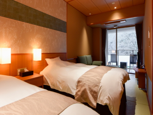 노천탕의 아리마의 명탕 금천은 염분과 철분이 많이 함유되어 있는 적갈색의 온천수이며 피부 보습과 보온 효과가 뛰어나다. 또한 대욕장의 실내탕에서는 투명하고 부드러운 수질의 자가원천으로 두 종류의 온천을 모두 즐길 수 있다. 총 19개의 다양한 타입의 객실이 마련되어 있으며 아리마 온천역에서 차로 약 3분 거리로 무료로 송영도 가능하다. 그 밖에도 1층 로비 안쪽에 마련된 족욕탕에는 수건이 비치되어 있어 머무르는 동안 몇 번이라도 편하게 이용할 수 있다. |