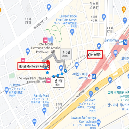 간사이 공항에서 차로 약 1시간 30분, 지하철 산노미야역에서 도보로 약 2분 거리에 위치한 몬테레이 호텔은 총 231개의 다양한 타입의 객실과 전실 금연으로 더욱 쾌적하게 이용할 수 있다. 비즈니스 및 관광에 최적의 위치로 역에서도 가깝고 호텔 주변에는 난킨마치, 하버랜드 등 인기 관광지가 많이 있다. 또한 자동 환기 시스템으로 로비, 복도, 객실 등 24시간 환기하고 있으며 이른 아침과 늦은 밤에도 이용 가능한 대욕장과 남탕에는 드라이 사우나, 여탕에는 미스트 사우나가 갖춰져 있어 여행에 지친 피로를 풀기에 좋다. |